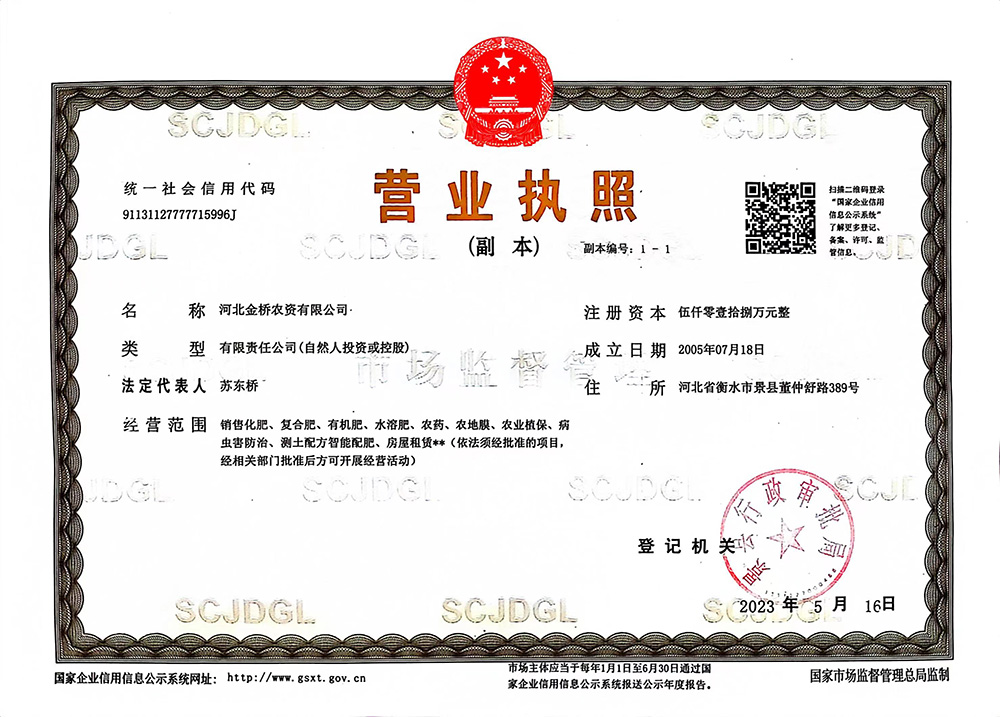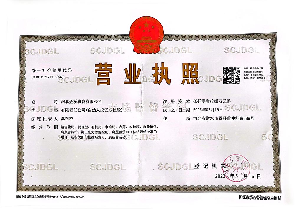 河北金橋農資有限公司是景縣供銷社下屬的股份制企業(yè),公司注冊資金5018萬元,倉儲面積15萬平方米。經營范圍:化肥、農藥、農地膜、無人機銷售、維修、無人機飛手培訓及飛防作業(yè),測土配方智能配肥等業(yè)務。公司下設景州、吳橋、王瞳、龍華、滄州、衡水、河間等九個農資配送中心,二個化肥經營部......